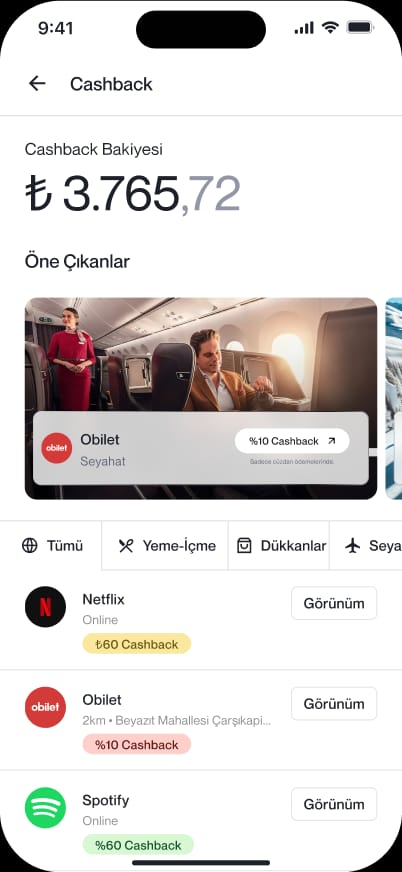 Avantajlı cashback kampanyalarımız ile tasarruflarını artır, finansal sağlığını koru. Alışveriş tutarının bir kısmını cüzdanına iade eden cashback sistemi ile harcarken kazanmaya başla.