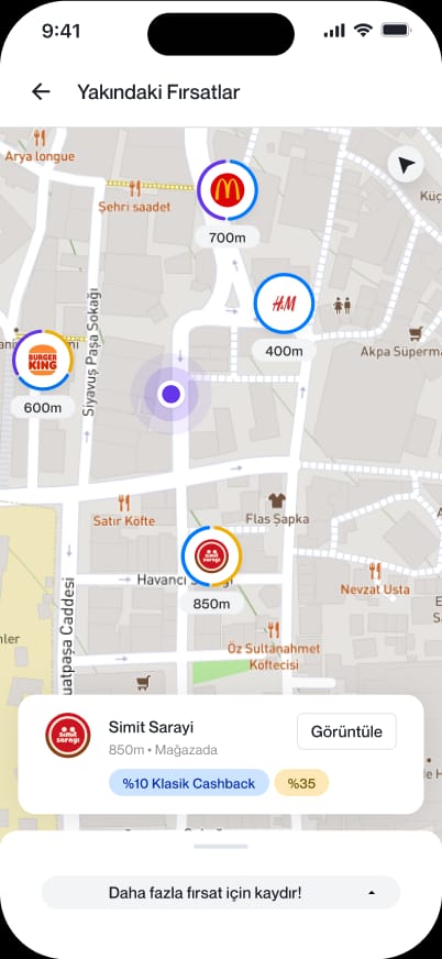 İndirim ve fırsatlara ulaşmak hiç bu kadar kolay olmamıştı. Bir yere giderken ya da etrafı dolaşırken Papel uygulamasını aç, konumuna en yakın işletmelerde Papel kullanıcılarına özel sunulan cashback fırsatlarını incele. Cebinde sana fırsatları haber veren bir kişisel asistanın varmış gibi hissedeceksin.