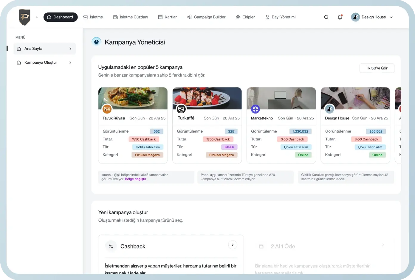Müşterilerine özel cashback kampanyalarını zahmetsizce oluştur ve yönet; daha fazla müşteri kazan, işini büyüt.