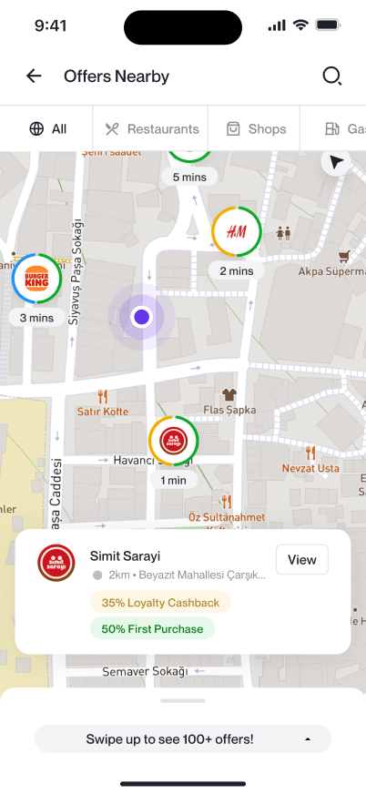 Finding the best deals has never been easier. Whether you're walking down the street or exploring a new neighborhood, simply open the Papel app, and you'll instantly see which shops and restaurants near you offer cashback. It's like having a personal savings assistant in your pocket.