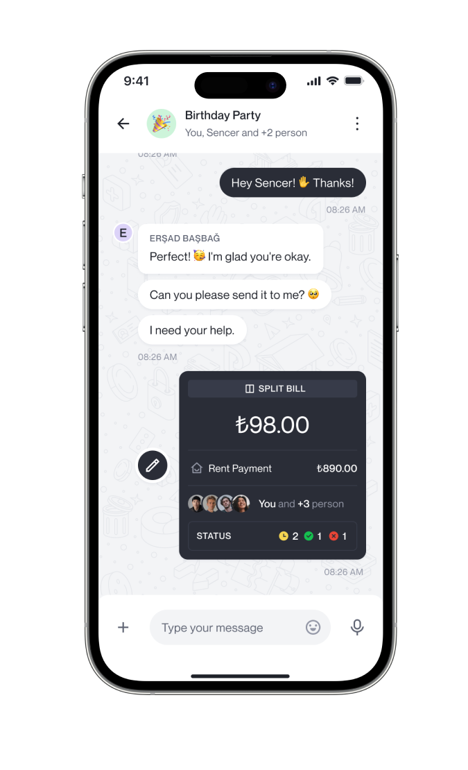 Conveniently divide the cost of meals, gifts, or shared expenses with friends or family. No need for complicated calculations, just split the bill directly in the app, ensuring everyone pays their fair share.