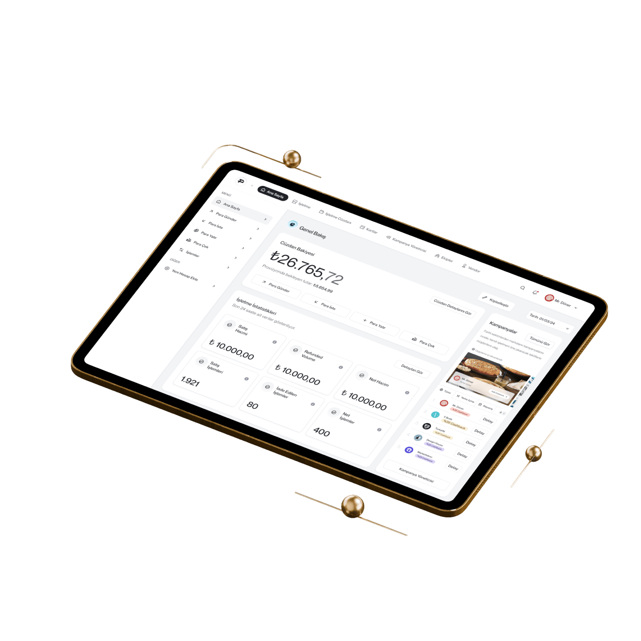 Android tabanlı fiziksel POS cihazıyla ödeme al. İşletme Paneli üzerinden cihazlarını yönet.